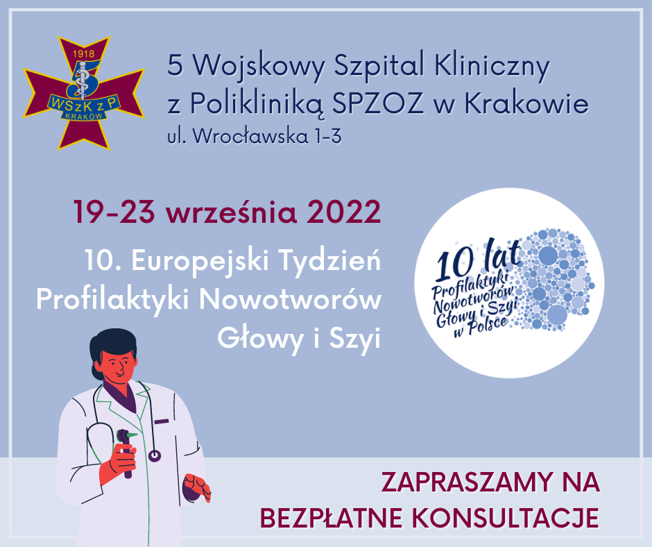 5WSZK po raz kolejny włącza się w to wydarzenie! W dniach 19 – 23 września 2022 r. zapraszamy na bezpłatne konsultacje otolaryngologiczne.