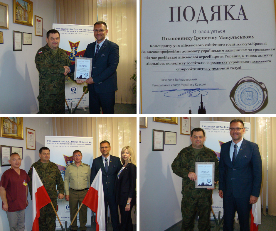 28 lipca 2022 r. Konsul Generalny Ukrainy w Krakowie Wiaczesław Wojnarowskyj i wicekonsul Iryna Yaremchuk odwiedzili 5. Wojskowy Szpital Kliniczny z Polikliniką SPZOZ w Krakowie.