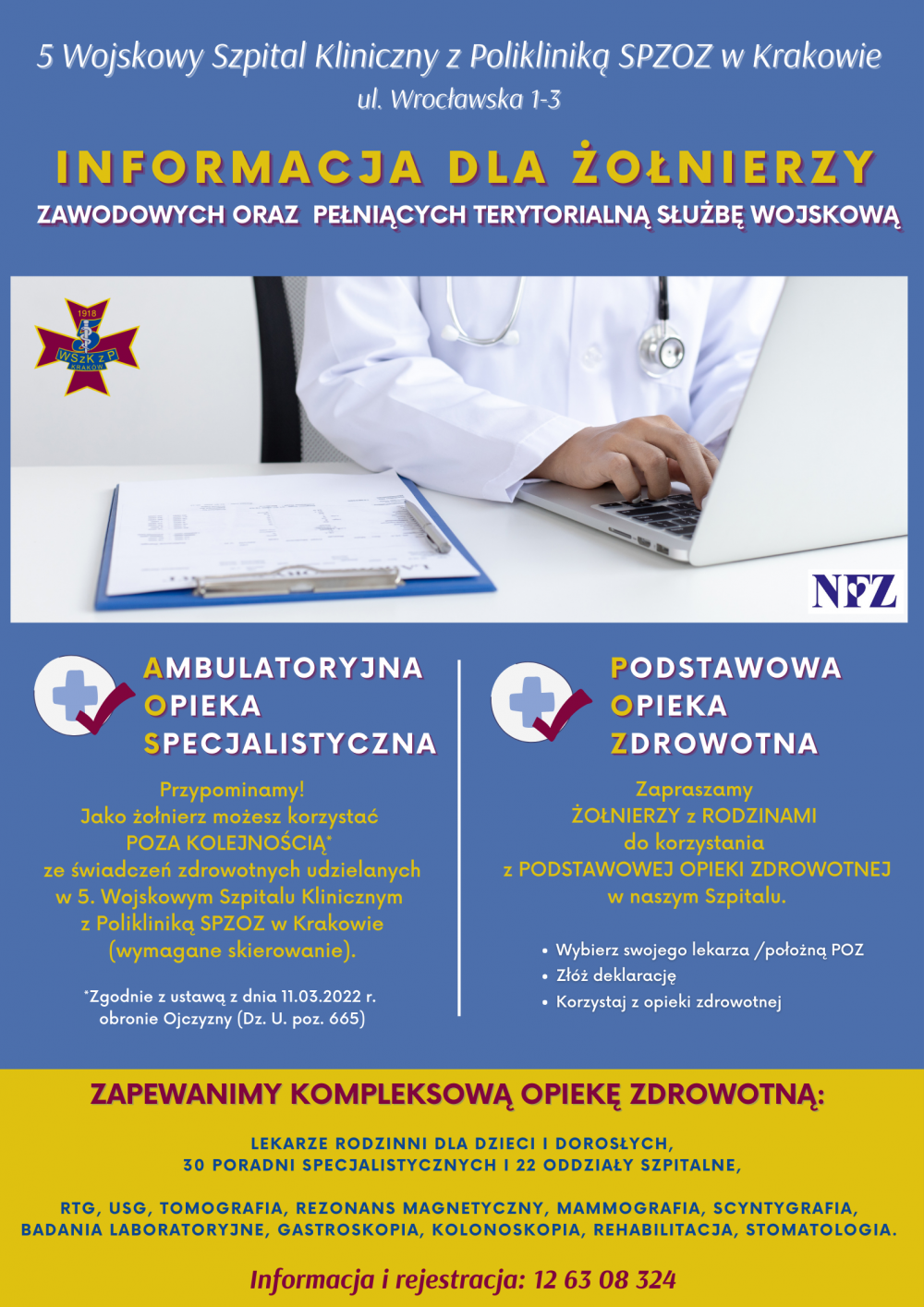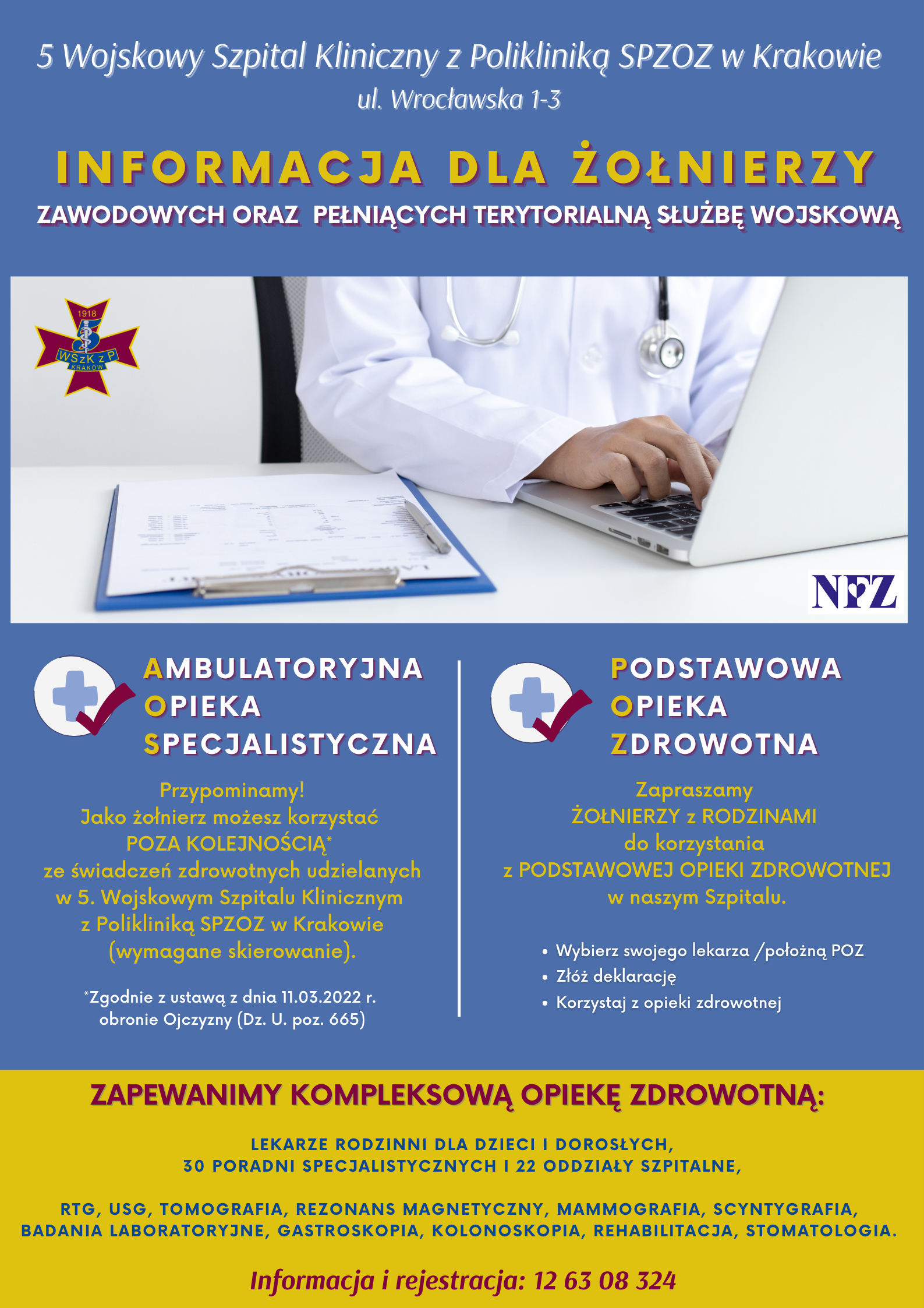 Informacja dla żołnierzy zawodowych oraz żołnierzy pełniących terytorialną służbę wojskową | 5 Wojskowy Szpital Kliniczny z Polikliniką SPZOZ
