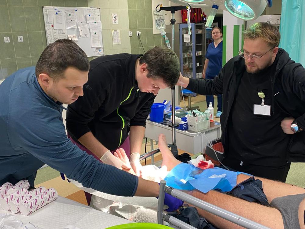 – To rzadki i raczej nietypowy uraz – tłumaczy kpt. lek. Łukasz Wawrzyniak, rezydent Kliniki Chirurgii Urazowej i Ortopedii szpitala wojskowego – Palec nie tylko został urwany, wyrwane także zostało ścięgno. Nie można go z powrotem „włożyć” na swoje miejsce. My dziś nie mamy dyżuru replantacyjnego, koledzy z Gliwic mają i postanowili spróbować uratować palec wspinaczki.