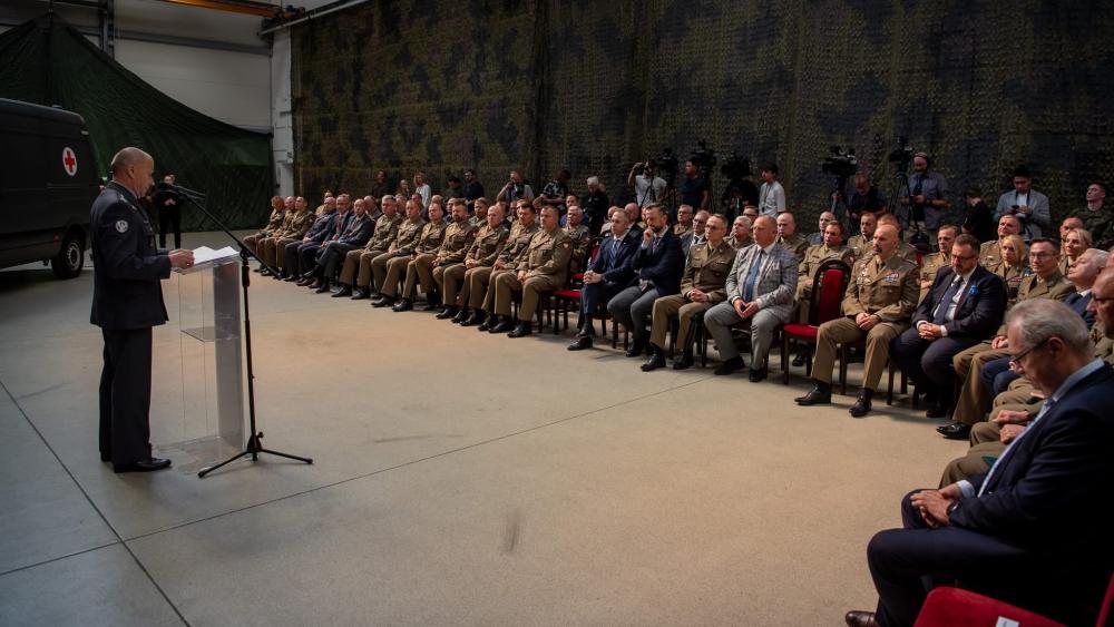 – Jednym z pierwszych zadań, które zostało wyznaczone przez pana ministra, jeżeli chodzi o działania dla nas wszystkich – zarówno dla mnie, jak i dla Sztabu Generalnego – było powstanie wojsk medycznych. Cieszę się, że dzisiaj kończymy jakiś etap i zaczynamy kolejny – właśnie po to, żeby wojska medyczne mogły zacząć funkcjonować, aby razem z ministrem zdrowia, razem z wojewodami, razem z Wojskiem Polskim przygotować państwo polskie na każdy scenariusz, który może się zdarzyć - podkreślił sekretarz stanu w MON, Cezary Tomczyk.