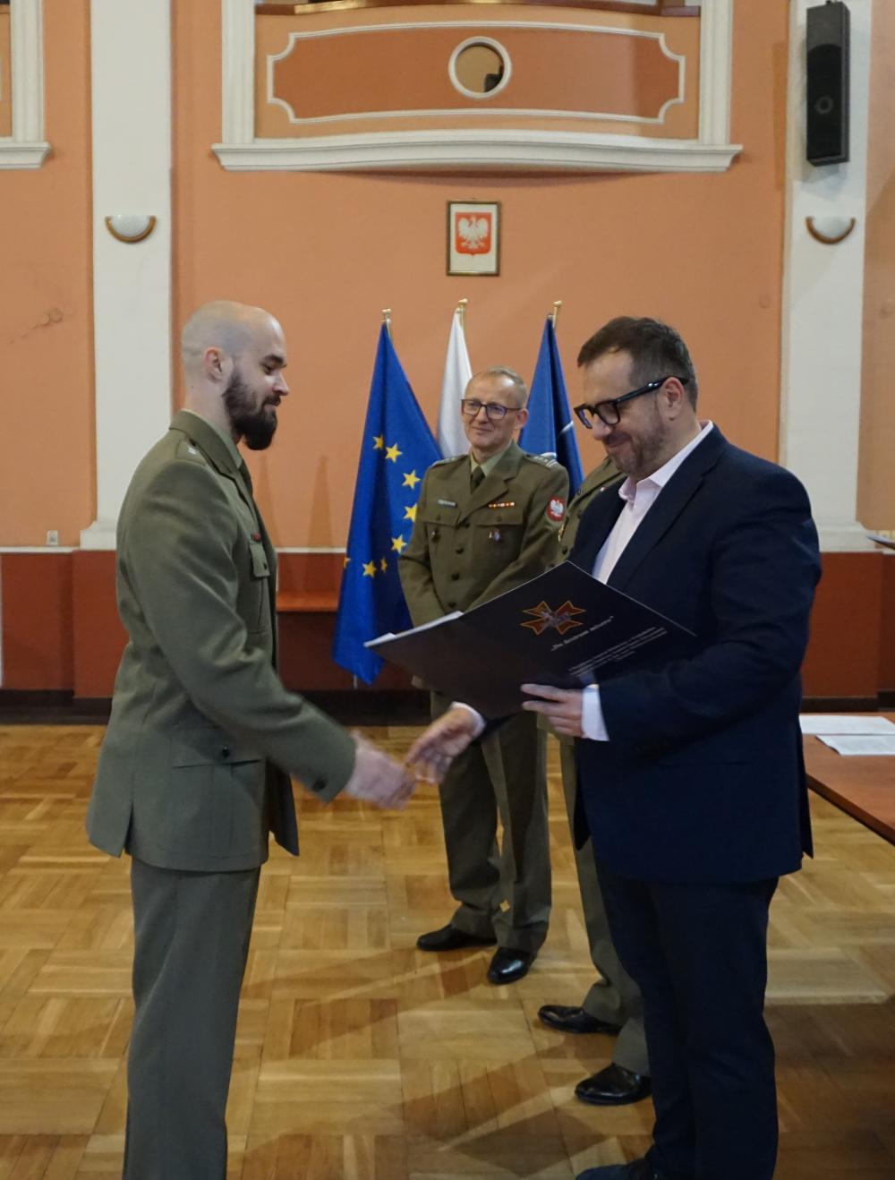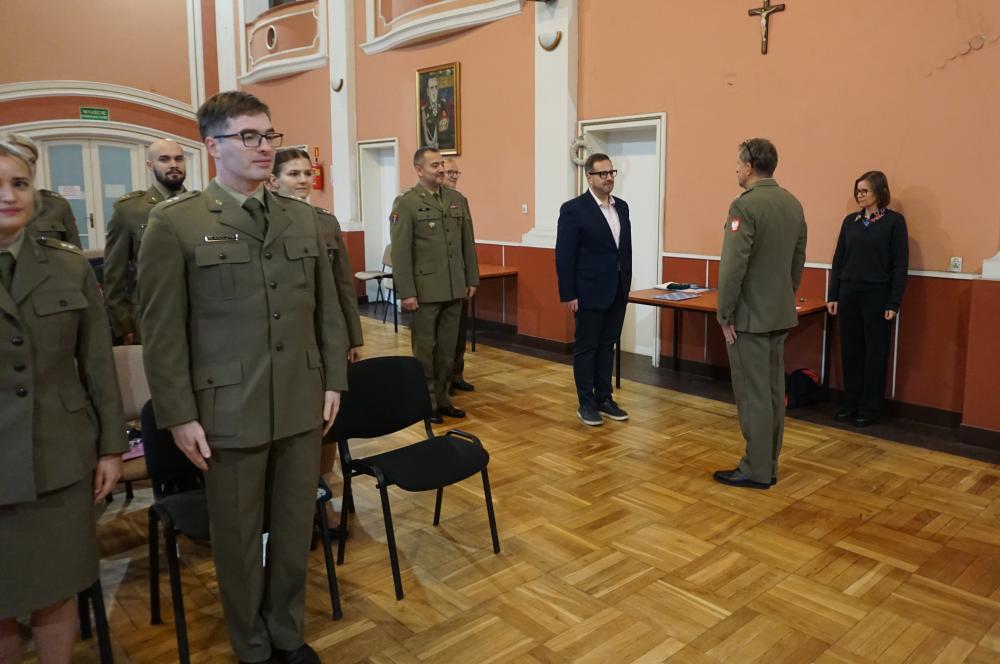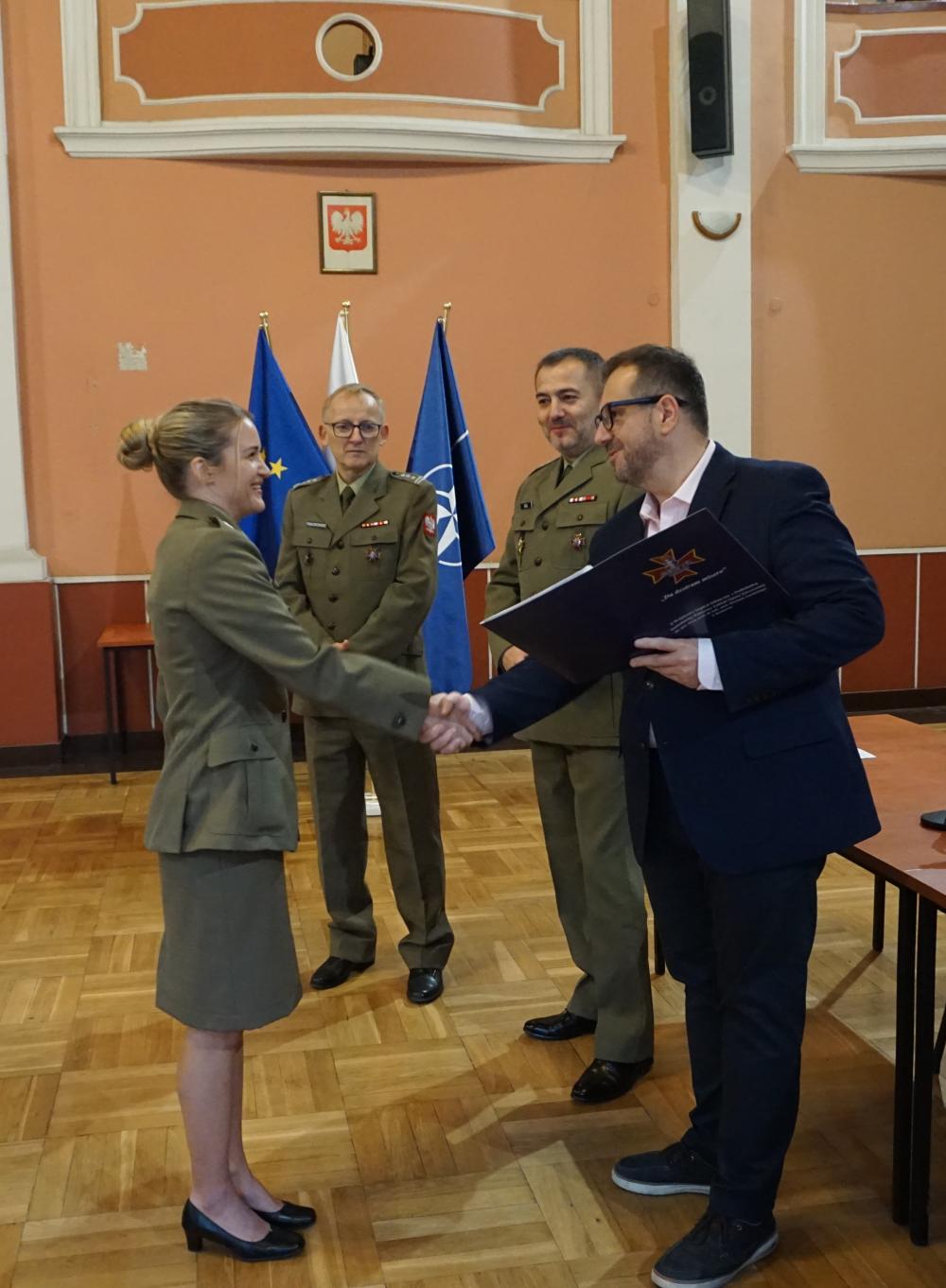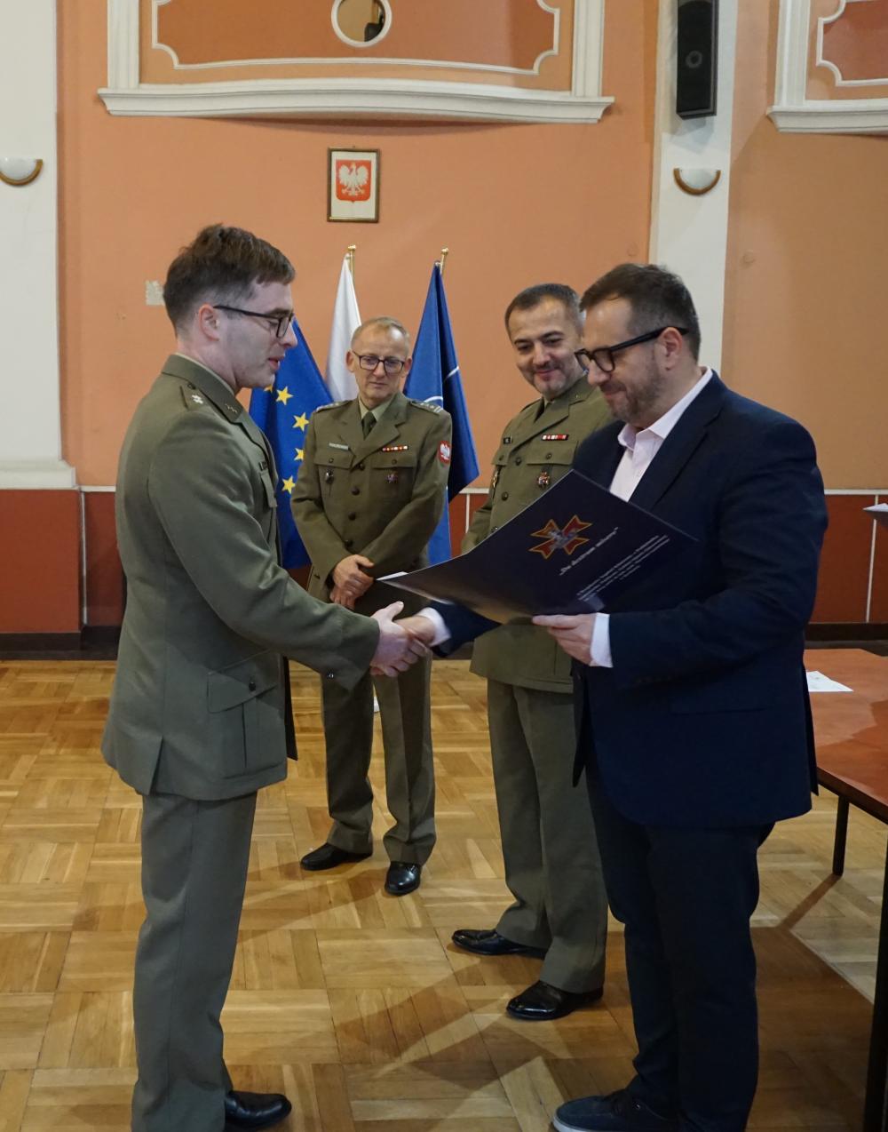 W dniu 30 września 2025 r. odbyło się uroczyste pożegnanie wojskowych lekarzy stażystów po zakończonym stażu podyplomowym. Dyrektor Szpitala dr hab. n. med. Bartłomiej Guzik podziękował za wzorowe wykonywanie obowiązków, życzył sukcesów na nowych stanowiskach służbowych w jednostkach wojskowych oraz zachęcił do realizacji szkolenia specjalizacyjnego w naszym szpitalu.
