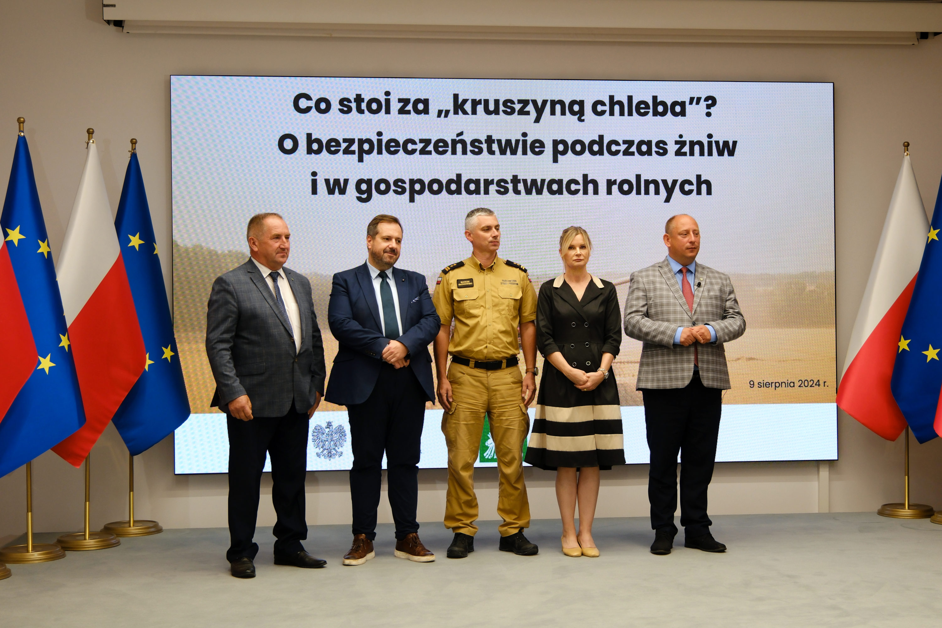 W briefingu prasowym w Małopolskim Urzędzie Wojewódzkim dotyczącym bezpieczeństwa rolników w czasie żniw i prac na polu udział wzięli: Uczestniczyli w nim: wojewoda małopolski Krzysztof Jan Klęczar, dyrektor Oddziału Regionalnego Kraków Kasy Rolniczego Ubezpieczenia Społecznego Iwona Szablińska, zastępca małopolskiego komendanta wojewódzkiego Państwowej Straży Pożarnej bryg. Marcin Głogowski, p.o. dyrektora 5 Wojskowego Szpitala Klinicznego z Polikliniką SPZOZ dr hab. n. med. Bartłomiej Guzik, prof. UJ oraz pełnomocnik wojewody małopolskiego do spraw rolnictwa Ryszard Jędruch.