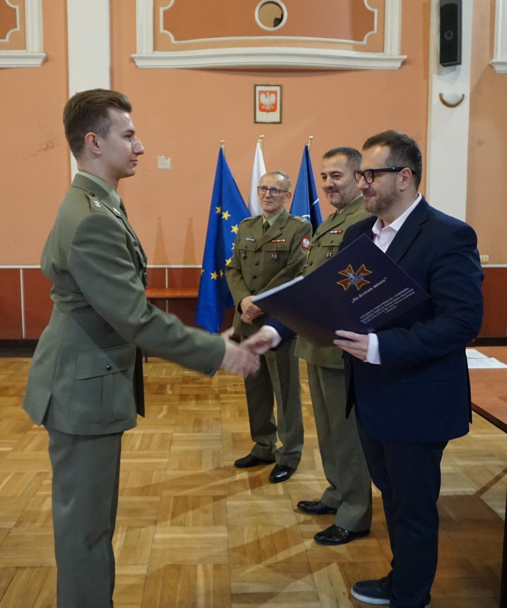 W dniu 30 września 2025 r. odbyło się uroczyste pożegnanie wojskowych lekarzy stażystów po zakończonym stażu podyplomowym. Dyrektor Szpitala dr hab. n. med. Bartłomiej Guzik podziękował za wzorowe wykonywanie obowiązków, życzył sukcesów na nowych stanowiskach służbowych w jednostkach wojskowych oraz zachęcił do realizacji szkolenia specjalizacyjnego w naszym szpitalu.