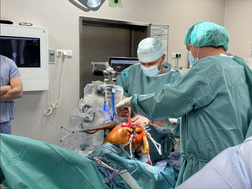 Optymalne ustawienie elementów endoprotezy kolana. Ortopedyczne ramię robotyczne w szpitalu wojskowym w Krakowie