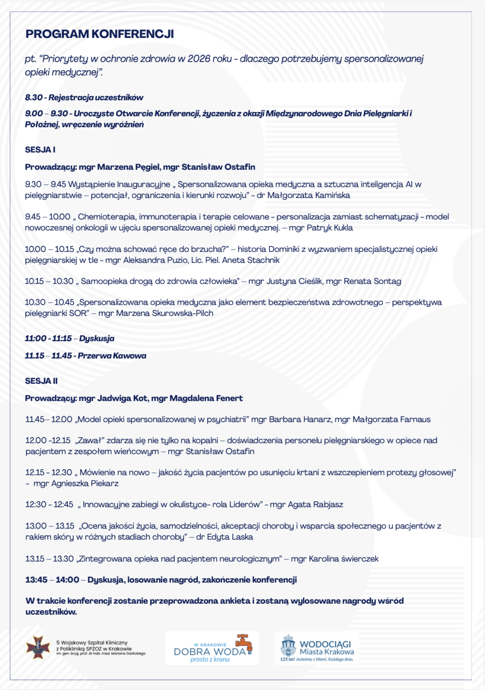 Konkretna wiedza, inspirujące przykłady i rozwiązania, które można wykorzystać w praktyce. W programie m.in. wykorzystanie sztucznej inteligencji w pielęgniarstwie, nowoczesne leczenie onkologiczne, jakość życia pacjentów oraz realne wyzwania opieki!